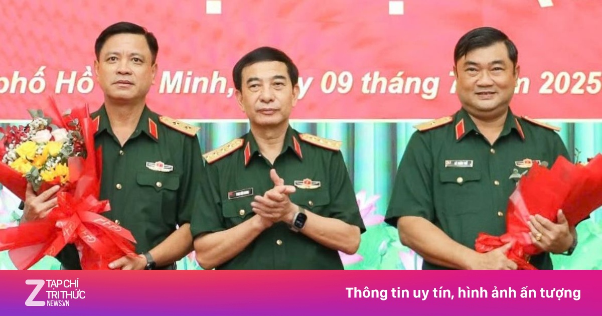 | Đại tướng Phan Văn Giang trao hoa chúc mừng Trung tướng Nguyễn Trường Thắng, tân Thứ trưởng Bộ Quốc phòng, và Thiếu tướng Lê Xuân Thế, tân Tư lệnh Quân khu 7. |