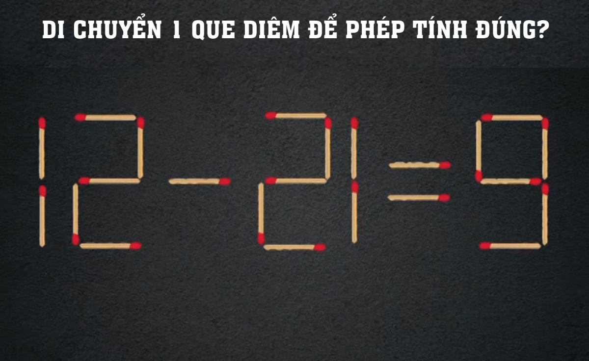 Phép toán nhìn tưởng "đi vào lòng đất", 12 trừ 21 mà ra 9 thì chắc chỉ có trong... giấc mơ của học sinh yếu Toán! Nhưng khoan, đừng vội cười! Bởi chỉ cần di chuyển duy nhất một que diêm, bạn có thể cứu cả bài toán, làm nên kỳ tích logic luôn đó. Cẩn thận nha, nhìn lâu dễ rối não, nhưng khi tìm ra đáp án thì phê không khác gì trúng số! Có người mất 3 phút, có người mất 30 phút, còn có người... bỏ luôn vì que diêm "không nghe lời".