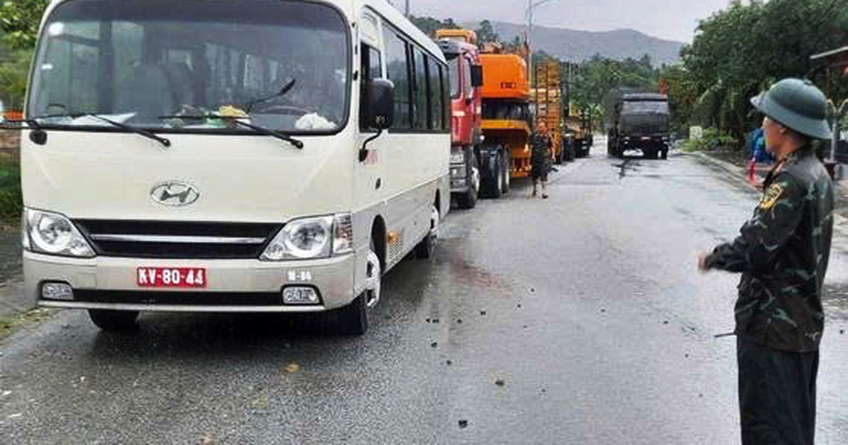 Chiều nay 27.10, Ban chỉ huy được huy động 19 xe các loại gồm xe chỉ huy, xe Kamaz, xe thông tin, đầu kéo, máy múc, máy ủi, xe ca và xe bếp để khắc phục sạt lở đất.