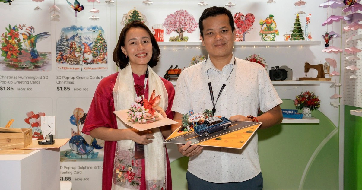 Một đại diện khác, Công ty CP Thiệp nổi và thủ công mỹ nghệ Việt Nam mang đến các mẫu thiệp 3D pop-up tinh xảo. Sau 12 năm kiên trì duy trì kênh phân phối trực tuyến, HMG đã xây dựng được thương hiệu ổn định, đặc biệt tại Mỹ - nơi sản phẩm thiệp chúc mừng có nhu cầu cao. Bà Phùng Minh Thủy, Nhà sáng lập kiêm Phó giám đốc kinh doanh, nhấn mạnh: "Điều quan trọng không chỉ là bán sản phẩm, mà còn lan tỏa thông điệp tình yêu và hạnh phúc qua từng tấm thiệp".