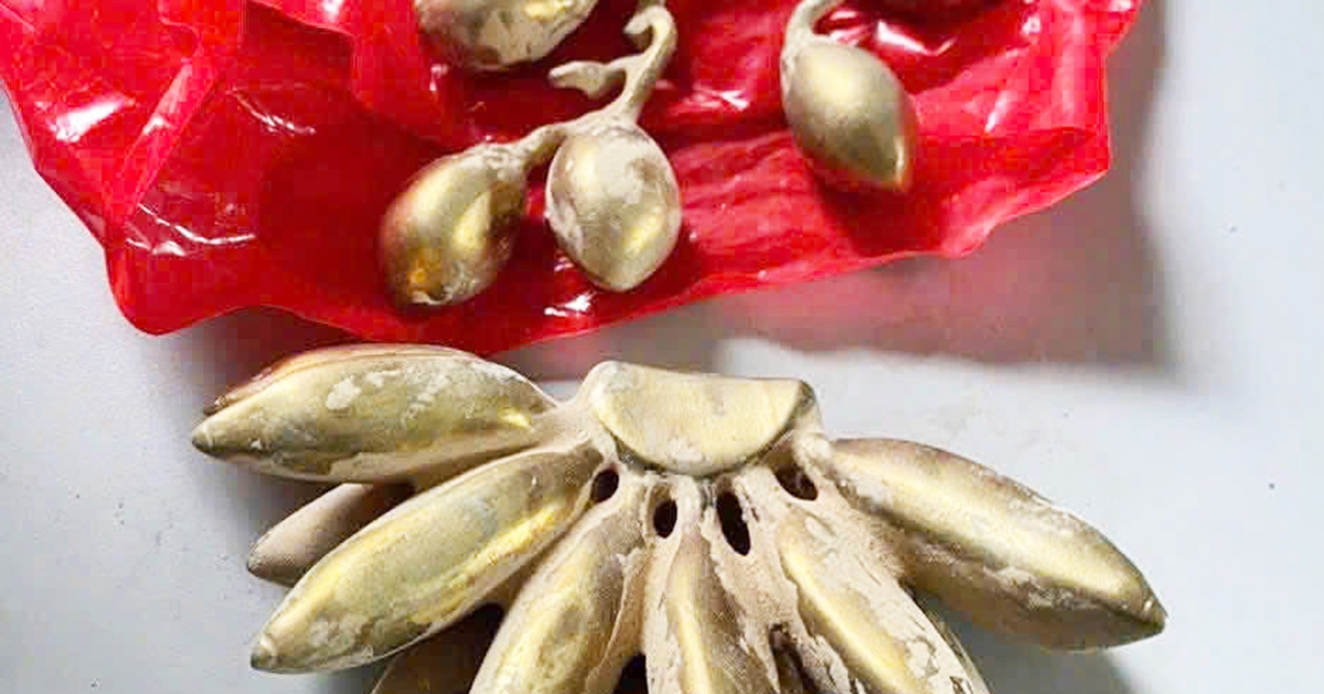 Người đàn ông dùng các vật dụng bằng đồng mạ vàng, chế tác thành nải chuối, chùm cau giống vàng thật để lừa đổi sợi dây chuyền vàng.