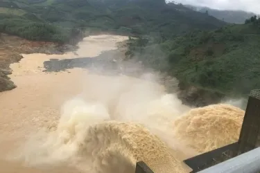 TPO - Nhiều đoạn đường gom trên đại lộ Thăng Long (TP Hà Nội) nước ngập sâu khoảng 40 - 50cm khiến giao thông đi lại khó khăn, nhiều phương tiện chết máy.