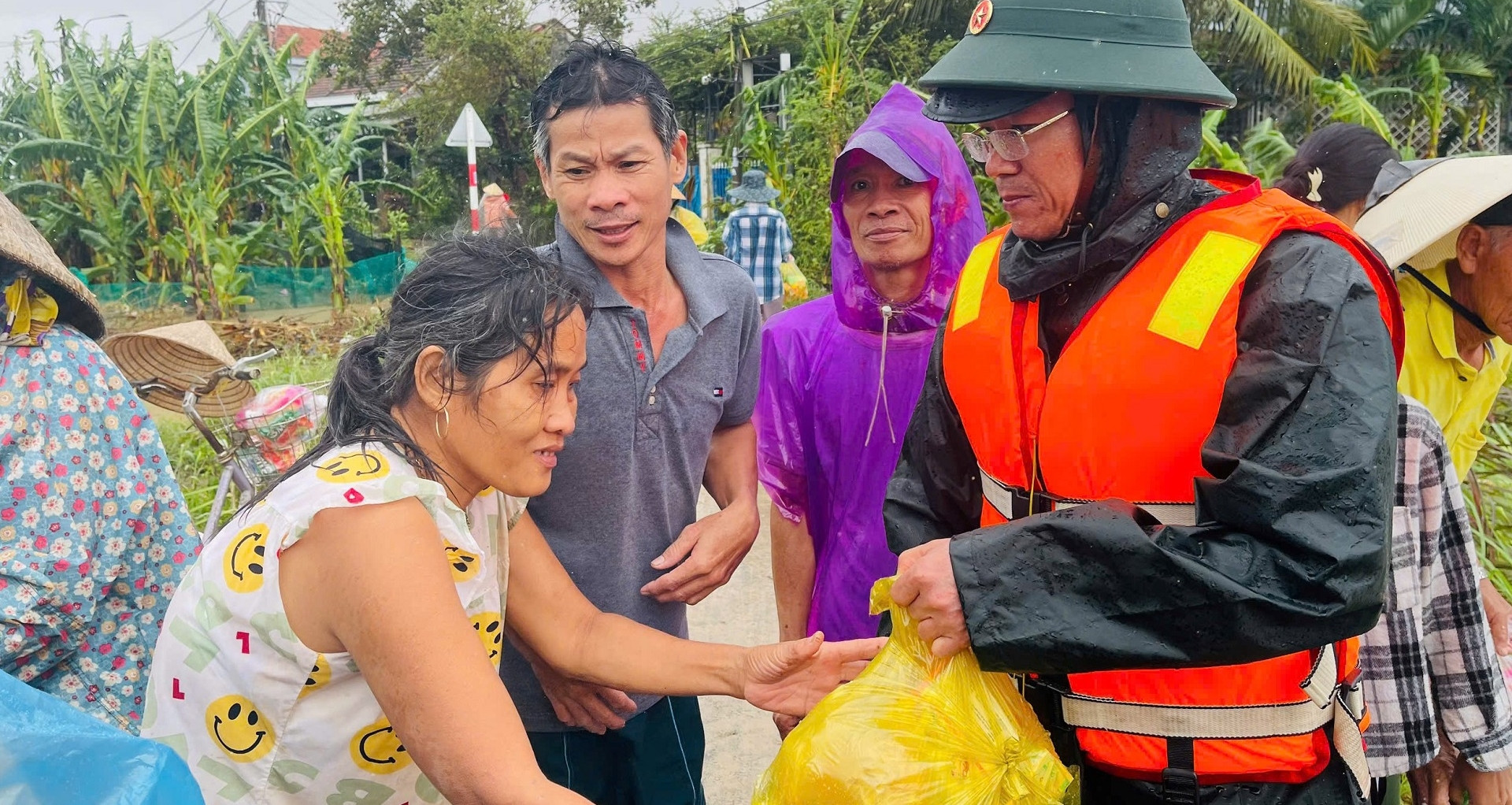 Cùng ngày, công an tỉnh phối hợp với doanh nghiệp trao 1.500 suất quà cứu trợ tại 7 xã, phường bị ngập, mỗi suất trị giá 750.000 đồng gồm tiền mặt, gạo và nhu yếu phẩm. Phòng CSGT cũng tiếp nhận thêm 10 tấn gạo và 20 tấn nhu yếu phẩm để phân bổ về các vùng còn bị cô lập.