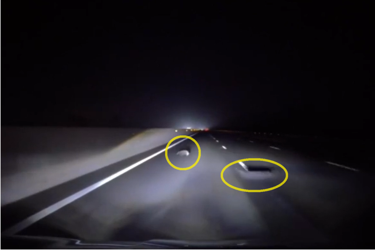 Cành cây, thùng nhựa, tảng đá, lốp xe... là những vật cản thường thấy trên cao tốc. Trong nhiều trường hợp, giữ thẳng lái và cán qua sẽ an toàn hơn, bởi xe được thiết kế để chịu được va chạm với vật nhỏ. Tuy nhiên, với những vật cứng và to như tảng đá, hay sắc nhọn như thanh sắt, tài xế nên chủ động giảm tốc và tìm cách né.