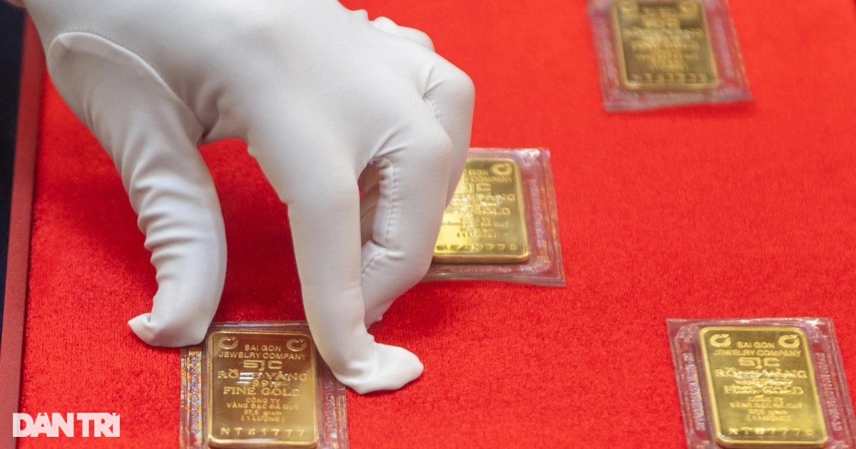 (Dân trí) - Giá vàng miếng giảm 1,5 triệu đồng so với cuối tuần trước, về 119,5 triệu đồng/lượng nhưng vẫn chênh trên 15 triệu đồng so với thế giới.