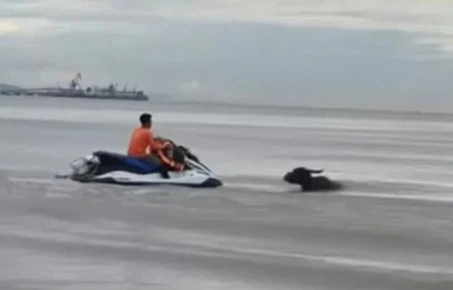 Giải cứu đàn trâu trôi dạt trên biển Cửa Lò