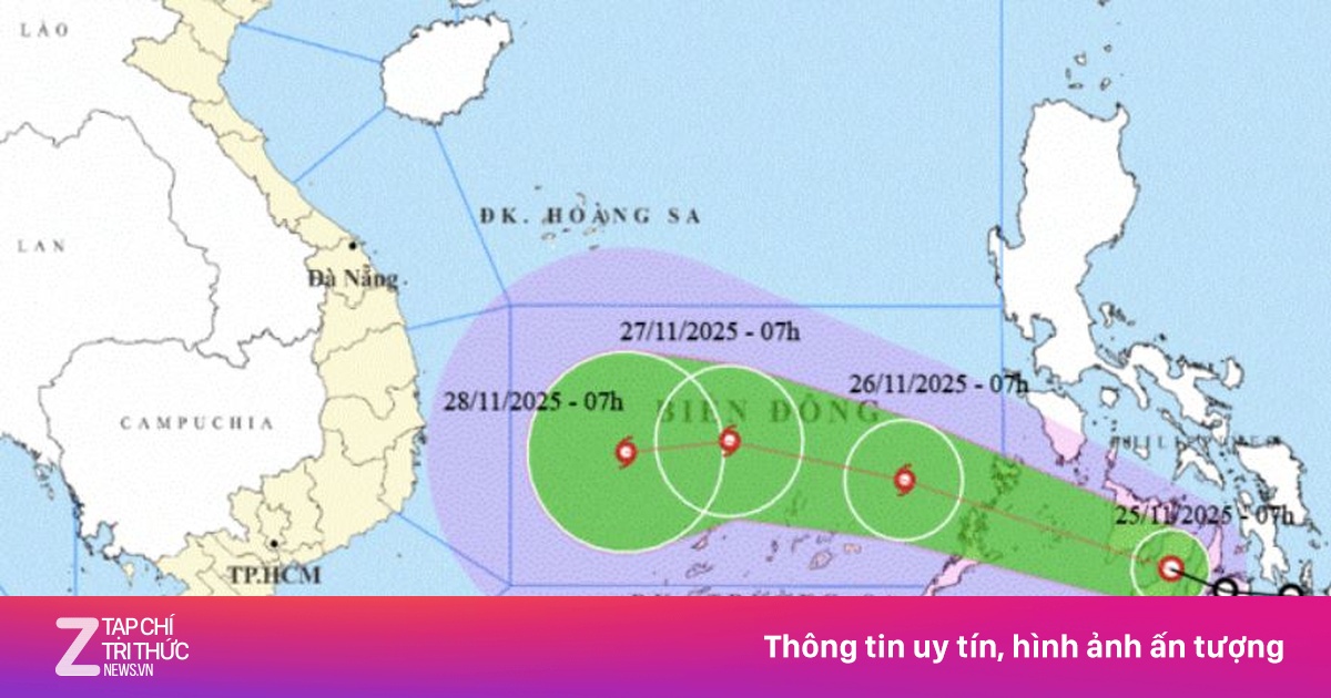 Dự báo trong ngày và đêm nay, áp thấp nhiệt đới di chuyển khá nhanh, vượt qua kinh tuyến 120 vào Biển Đông và mạnh lên thành bão số 15. Đến 7h sáng mai (26/11), khi hoạt động trên khu vực Giữa Biển Đông, bão mạnh cấp 8, giật cấp 10.