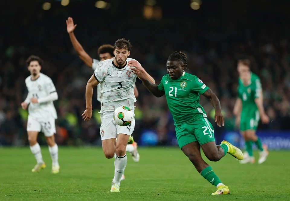 Ruben Dias (trái) trong trận Bồ Đào Nha thua Ireland. |