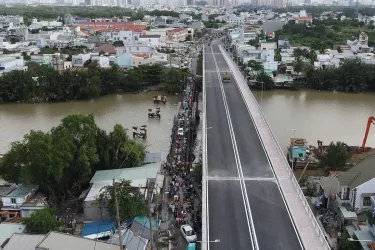 Sáng 19/4, dự án cầu Gành Hào nối 2 tỉnh Bạc Liêu và Cà Mau, được thông xe kỹ thuật ngày 19/4, sau hơn 2 năm thi công.