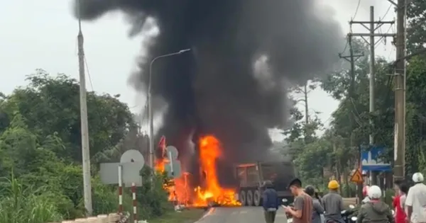 Cú va chạm làm cả 2 xe bốc cháy dữ dội, ngọn lửa bao trùm toàn bộ phần đầu xe, cột khói đen bốc cao hàng chục mét. Loạt tiếng nổ lớn phát ra từ hiện trường khiến người dân gần đó hoảng loạn.