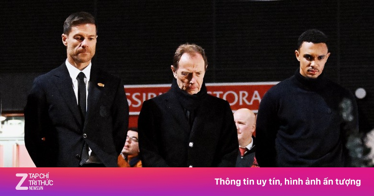 HLV Xabi Alonso và Trent Alexander Arnold đại diện cho đội bóng Hoàng gia Tây Ban Nha đến đặt vòng hoa tưởng nhớ Diogo Jota.