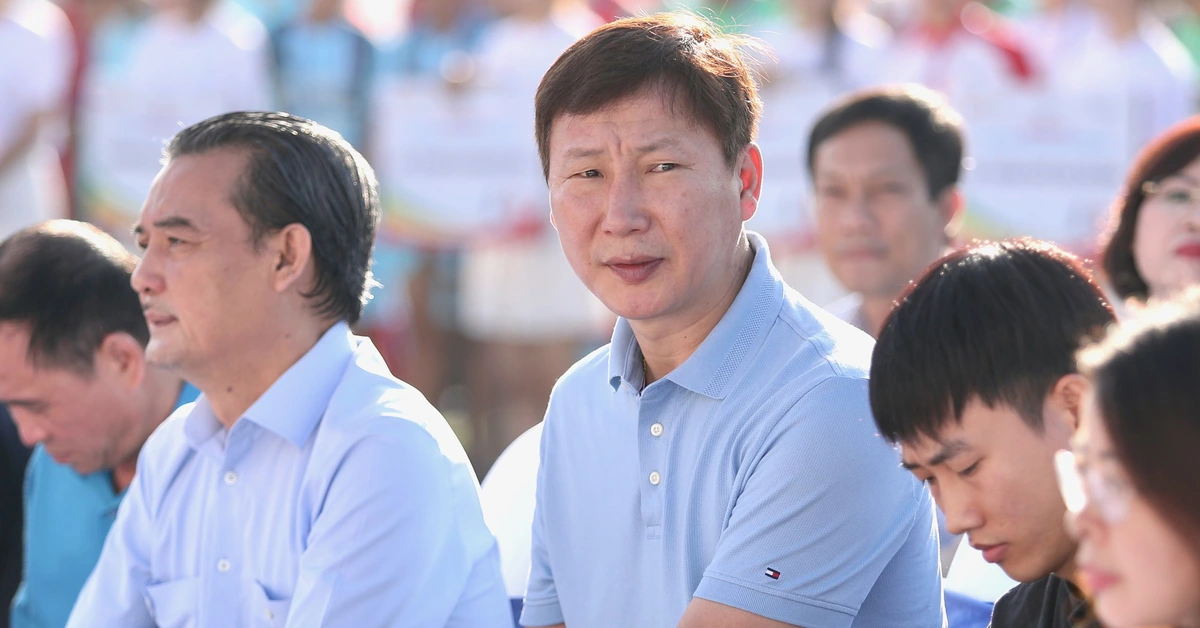 Sáng 3-10, HLV Kim Sang Sik tranh thủ thời gian đi dự lễ khai mạc Giải bóng đá công nhân, viên chức Việt Nam 2025.