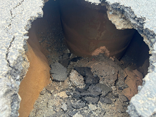 Người dân cho biết khu vực này nhiều ngày qua mưa lớn, có đoạn ngập. Đây là lần đầu họ chứng kiến mặt đường nơi đây sụt lún.