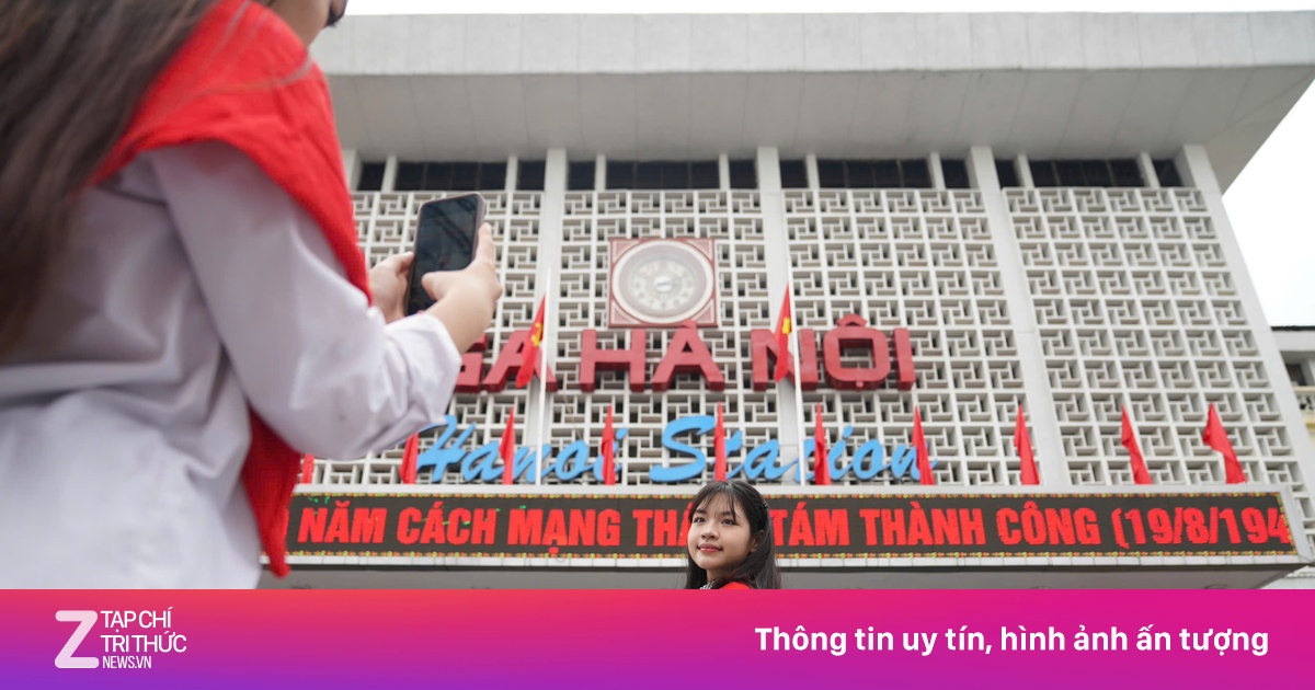 Du khách check-in ga Hà Nội trong buổi sơ duyệt cấp Nhà nước lễ diễu binh, diễu hành A80 ngày 27/8. Ảnh: Linh Huỳnh. |