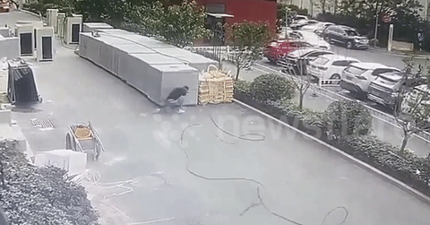 TRUNG QUỐC - Đoạn video gây sốc ghi lại cảnh một chiếc cần cẩu khổng lồ bất ngờ đổ ập xuống suýt đè trúng người đàn ông đang đứng dưới chân tòa nhà cao tầng.