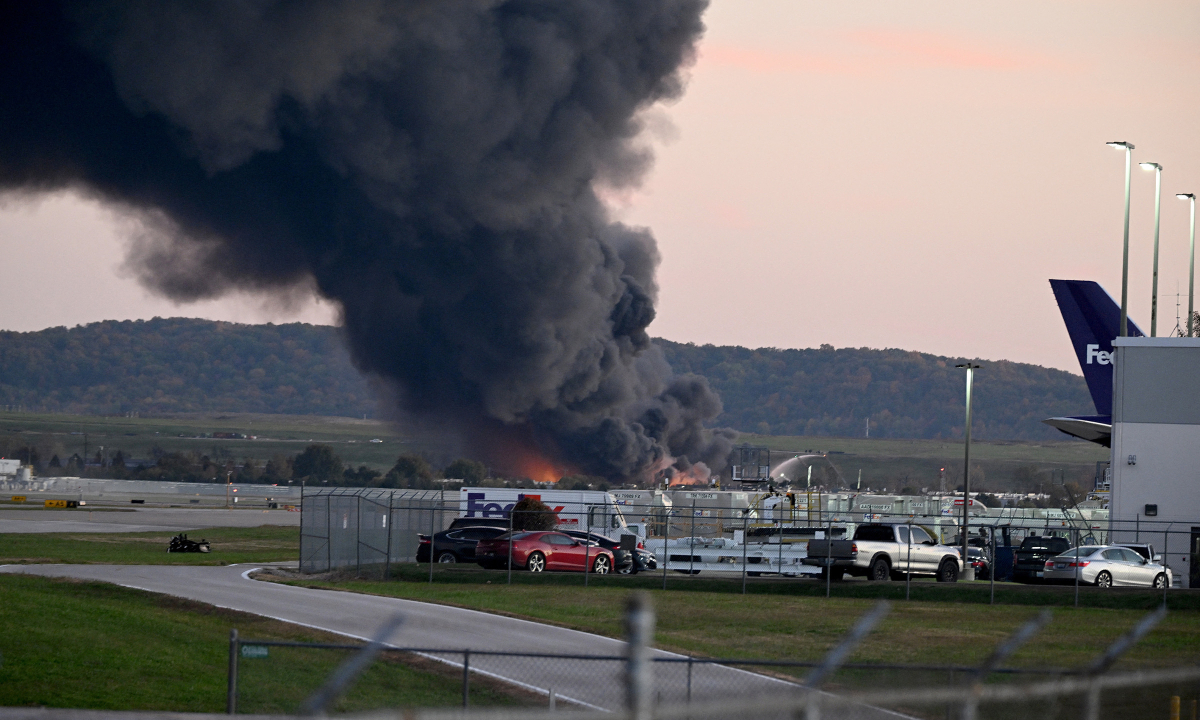 Máy bay chở hàng McDonnell Douglas MD-11 của hãng vận tải UPS với ba thành viên phi hành đoàn rơi vào khoảng 17h15 ngày 4/11 trong lúc đang cất cánh từ thành phố Louisville, bang Kentucky đến Honolulu, Hawaii. Phi cơ được tiếp đầy nhiên liệu cho hành trình bay dài 8,5 giờ, dẫn đến đám cháy lớn sau vụ nổ tại khu vực gần sân bay.
