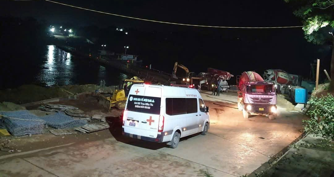 Theo anh Đăng, khi đến cầu phao, 1 xe bồn và 1 xe bơm bê tông đã vào vị trí chuẩn bị hoạt động. Nhận thấy xe cứu thương đi tới, chỉ khoảng 5 phút, toàn bộ các máy công trình đã di chuyển gọn cho xe cứu thương của anh đi qua.