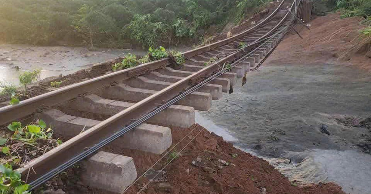 Sáng 7-11, ông Lê Quang Vinh - Giám đốc Chi nhánh Khai thác đường sắt Phú Khánh - cho biết thông tin mưa lũ do ảnh hưởng bão số 13 (Kalmaegi) đã làm hư hỏng nặng tại Km1136+850 đường sắt Bắc - Nam dài 90m, sâu đến 9m thuộc khu gian Vân Canh - Phước Lãnh.