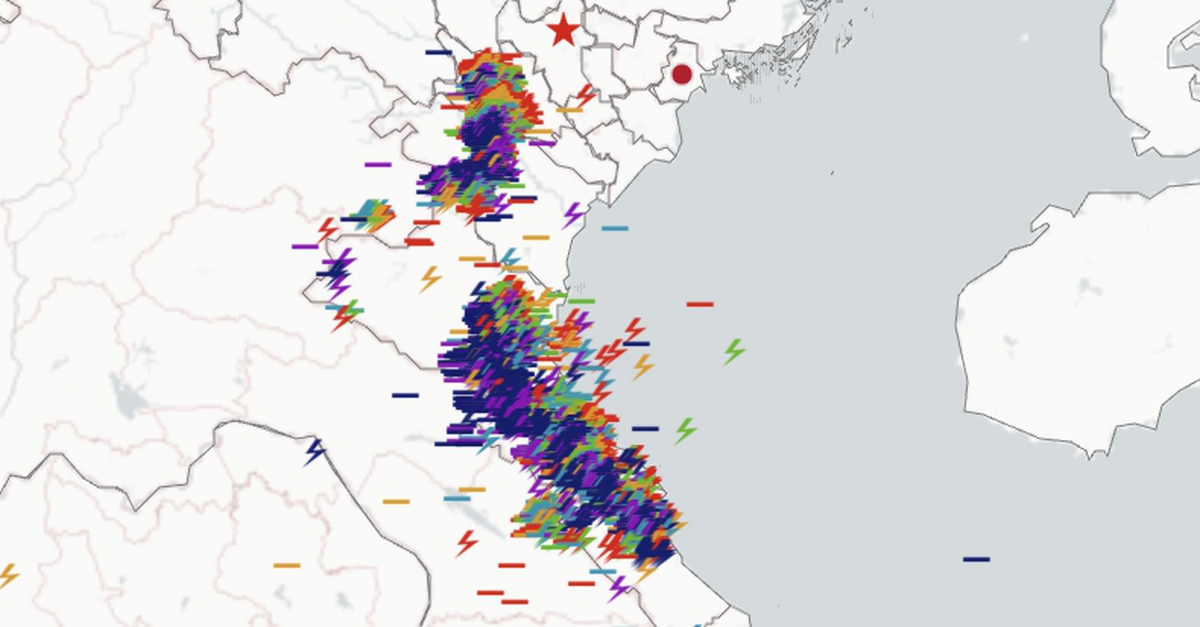 Từ 19h30 tới 23h, ghi nhận hơn 42.000 cú sét đánh xuống đất và sét đánh trong mây, trong đó có hơn 15.000 cú sét đánh xuống đất, còn lại sét đánh trong mây.