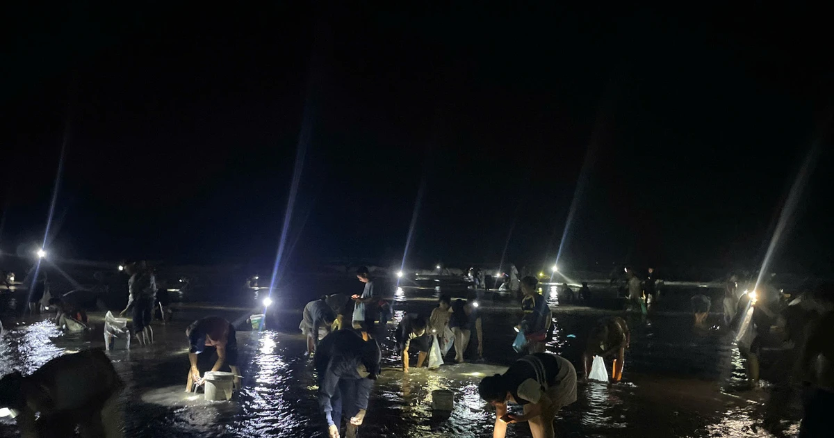 Ngao, sò đắp đống ở bờ biển Ninh Bình, người dân đổ xô đi bắt trong đêm