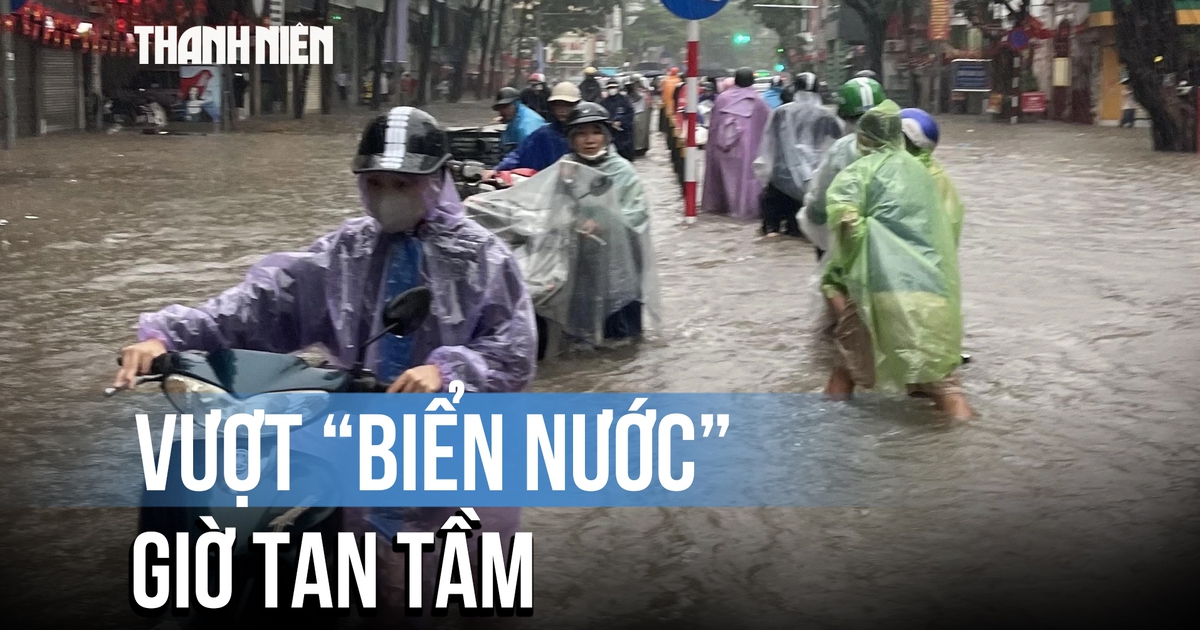 Người dân Hà Nội chật vật vượt ‘biển nước’ giờ tan tầm