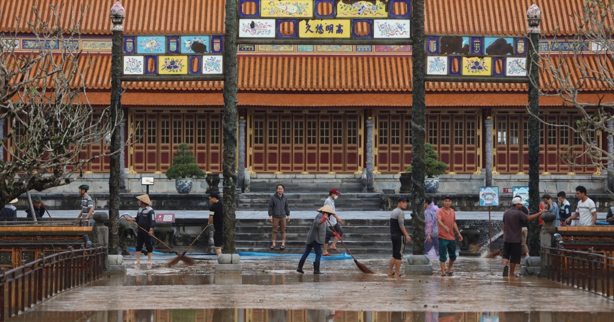 Trung tâm Bảo tồn Di tích Cố đô Huế đã huy động nhân lực dọn dẹp vệ sinh, mở cửa đón khách tham quan khu di sản trở lại từ 8h cùng ngày, sau thời gian tạm đóng cửa vì mưa lũ.