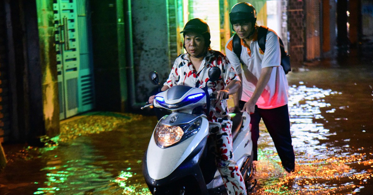 Mưa tạnh từ đầu giờ chiều nhưng đến tối tình trạng nước ngập tại hẻm 49, đường số 51 (phường An Hội Tây) vẫn chưa rút hết khiến người di chuyển qua khu vực gặp khó khăn, đời sống sinh hoạt của người dân bị đảo lộn.