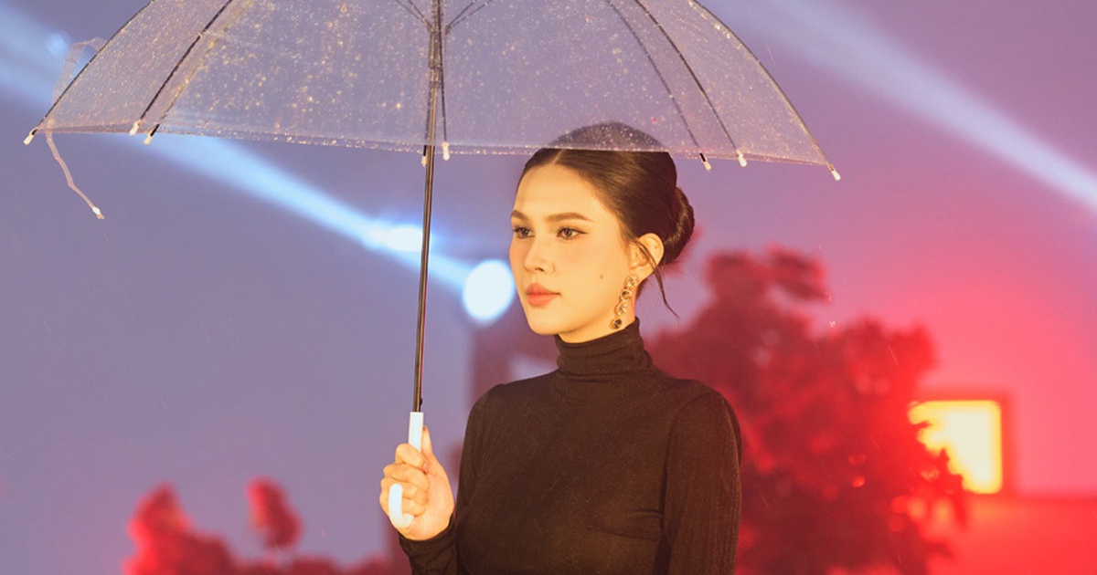 Che ô dưới cơn mưa nhẹ, Á hậu Linh Đan còn tỏa sáng với vẻ đẹp nhẹ nhàng, trong trẻo. Có thể nói người đẹp không chỉ hoàn thành tốt vai trò trình diễn mà còn truyền tải khéo léo tinh thần mà Adrian Anh Tuấn gửi gắm.