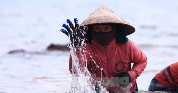 TPO - Để vớt được rong biển, nhóm người phụ nữ phải đi dọc bờ biển, ngụp lặn hàng giờ với sóng nước. Mỗi ngày, một người có thể nhặt được 5-7kg rau, bán được 400-500 nghìn đồng, góp thêm tiền trang trải cuộc sống.