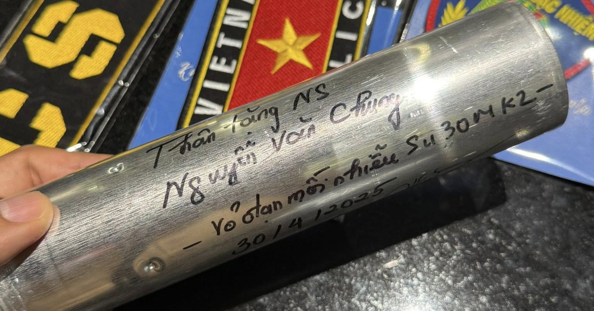 Về món quà đặc biệt là vỏ đạn mồi nhiễu, nhạc sĩ Nguyễn Văn Chung chia sẻ người tặng là một trong những phi công lái tiêm kích Su-30MK2 vào đại lễ 30-4.