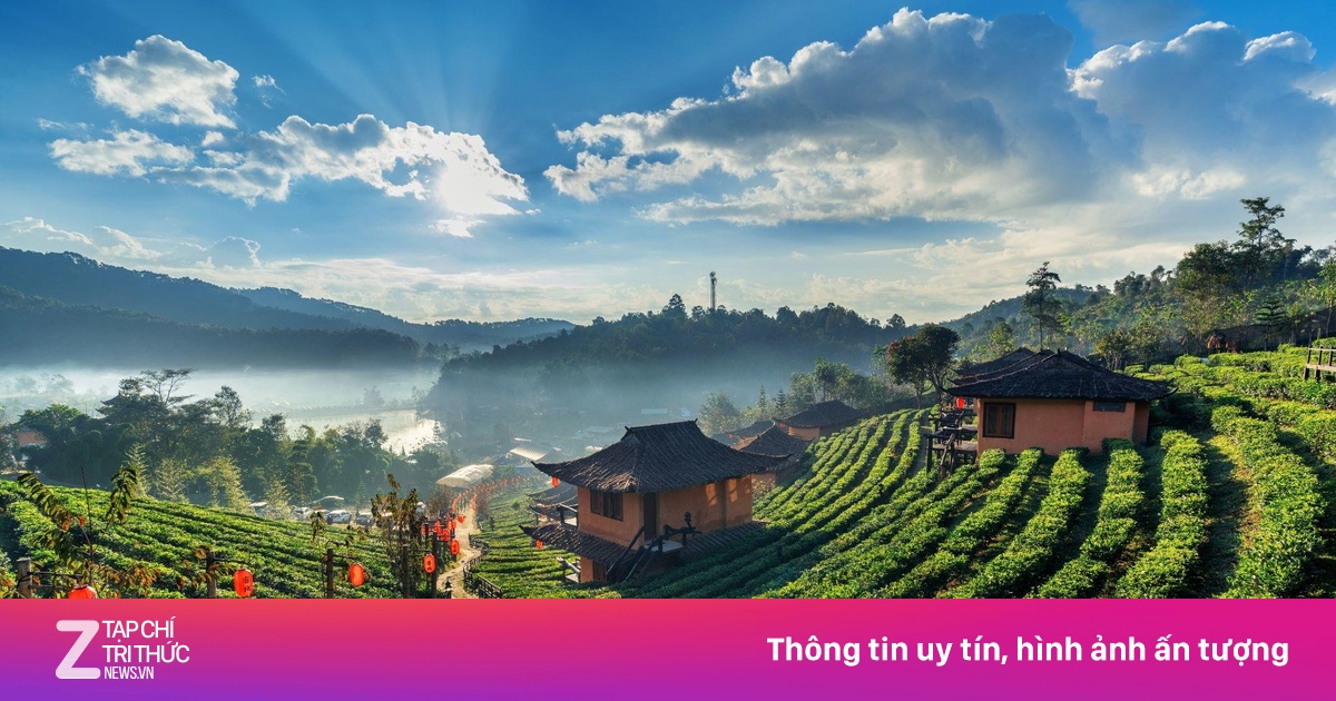 | Những đồi chè xanh mướt và khung cảnh đậm chất Trung Hoa của Ban Rak Thai. |