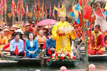 Ngày 13/4, tại Quần thể danh thắng Tràng An - Di sản văn hóa và thiên nhiên thế giới (Ninh Bình) diễn ra lễ hội truyề