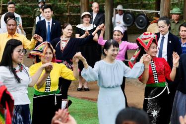 Phu nhân Thủ tướng Việt Nam và Nhật Bản có những trải nghiệm đáng nhớ tại thị xã Sơn Tây, Hà Nội, khi cùng làm quả cò