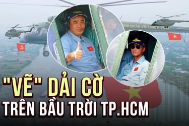 Giữa bầu trời xanh ngời của TP.HCM sáng 18.4.2025, những chiếc trực thăng quân sự rẽ mây kéo cờ bay vào trung tâm thà