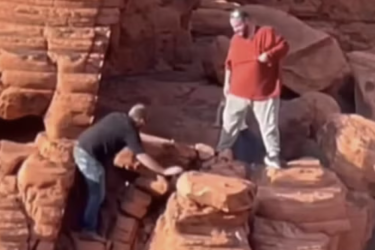 Cả hai vừa phải nộp tiền phạt, vừa đối mặt với án tù vì tội phá hoại đá cổ, theo Independent.