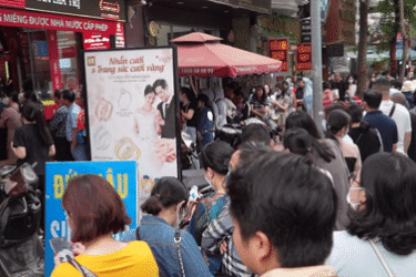 Giá vàng cao kỷ lục, người dân xếp hàng dài xuyên trưa dưới lòng đường chờ mua