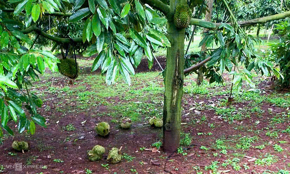 Tại Ea Tôh, xã Krông Pắc, bà Đoàn Thị Thúy, chủ vườn hơn 100 cây sầu riêng, cho biết những ngày qua trái chín rụng liên tục, mỗi ngày vườn thất thoát hơn 200 kg. Doanh nghiệp thu mua đặt cọc mỗi kg trái tại vườn 82.000 đồng, nhưng nay hàng rụng bà chỉ bán được 20.000-25.000 đồng cho thương lái nhỏ.