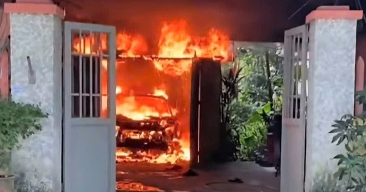 (Dân trí) - Chiếc ô tô để trong sân một nhà dân ở Ninh Bình bất ngờ bốc cháy dữ dội, sau thời gian ngắn chỉ còn lại trơ khung, một số tài sản khác gần đó cũng bị thiêu rụi.