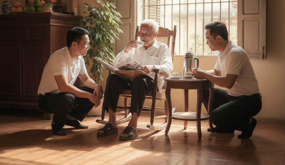 Mỗi tháng, ba anh em đều đặn chuyển 5 triệu "tiền lãi" cho bố, coi đó như nghĩa vụ tài chính phải trả nghiêm túc. Nhờ vậy, ông bác tôi có khoản thu nhập ổn định 15 triệu đồng mỗi tháng. Với một người già sống ở quê, số tiền này dư sức cho một ông già ở quê sống phong phú, sáng cà phê, trưa đánh cờ tướng với bạn già.