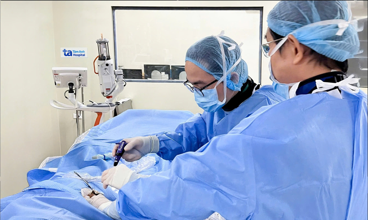 Bác sĩ Dũng đặt stent graft (khung đỡ có lớp màng chắn phủ quanh nhằm không cho máu thoát ra khỏi lòng mạch) thay vì mổ mở nhằm rút ngắn thời gian thủ thuật, hiệu quả điều trị cao, giảm nguy cơ biến chứng, phục hồi nhanh. Êkíp luồn ống thông từ động mạch đùi đến đoạn động mạch chủ ngực tổn thương, sau đó đưa stent graft vào. Hậu phẫu, sức khỏe bệnh nhân ổn định.