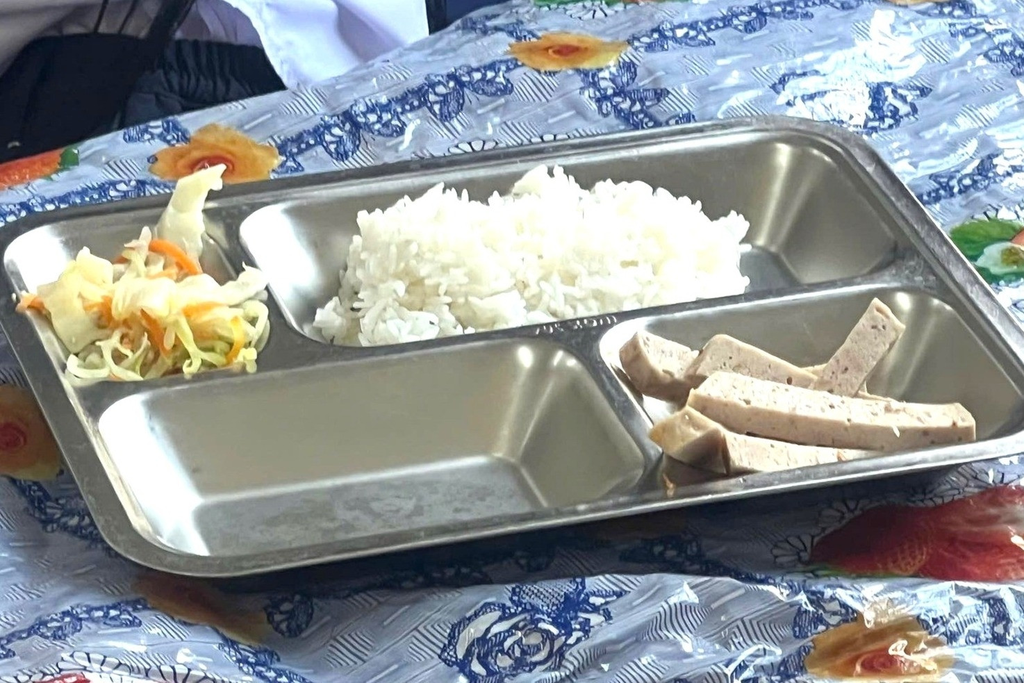 Đính kèm nội dung bài đăng là hình ảnh khay cơm với một số lát chả giò, bắp cải xào và cơm trắng. Trước thông tin này, nhiều ý kiến cho rằng nhà trường nên xem lại suất cơm vì không thể đủ dinh dưỡng.