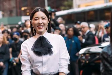 Quần baggy trắng với phom đứng dáng khiến cô nàng trở nên thanh lịch, phối cùng áo sơ mi lụa pastel nhẹ nhàng và túi xách trắng tone sur tone là đã hoàn thiện diện mạo lôi cuốn.