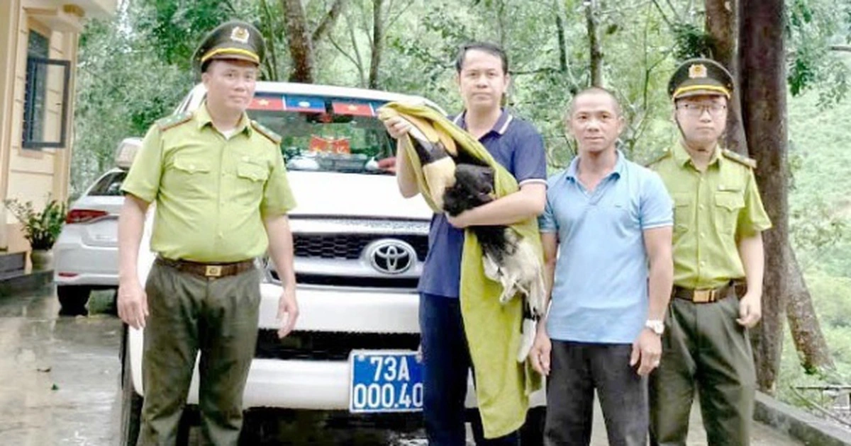 Chiều nay 13.10, chim quý hiếm được Hạt kiểm lâm Trường Sơn phối hợp với UBND xã, Công an xã Trường Sơn bàn giao cho Trung tâm Cứu hộ, bảo tồn và phát triển sinh vật thuộc Vườn quốc gia Phong Nha - Kẻ Bàng để chăm sóc, cứu hộ trước khi thả về môi trường tự nhiên.