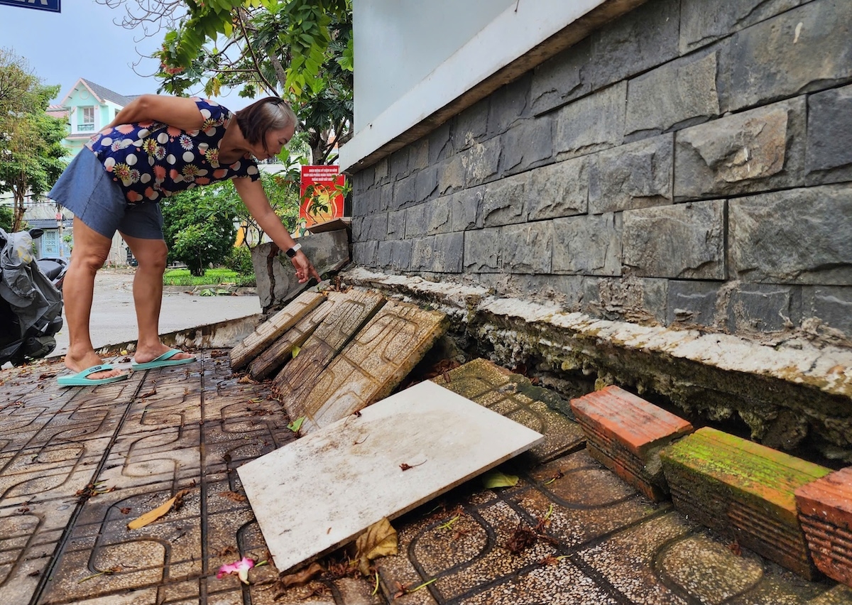 Căn hộ của bà Tuý, 69 tuổi, trên đường 2A, phường An Lạc (quận Bình Tân cũ) được xây năm 2015. Khi ấy bà Tuý đã cho đóng cọc móng sâu hơn 30 m để tránh sụt lún, nhưng nền đất yếu vẫn khiến công trình hạ dần. Những vết nứt nhỏ dọc tường giờ đã loang rộng; khe hở giữa nền và móng đủ cho chuột, rắn chui vào. Ba lần nâng nền, xi măng vẫn nứt, bà phải dùng gạch bịt tạm để ngăn nước và rác tràn vào.