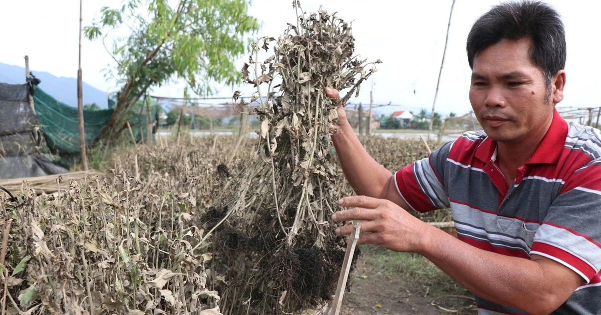 Điều trớ trêu là ngay cả việc dọn dẹp để chuẩn bị trồng rau màu khác, bà con cũng không dám làm mà phải giữ nguyên hiện trạng để chờ chính quyền xuống kiểm đếm. "Dọn sạch rồi ai tin mình thiệt hại bao nhiêu? Đành để vậy, chờ hỗ trợ. Chứ trồng lại thì ra giêng hoa mới nở, ai mà mua", anh Tảo nói, đầu lắc buồn bã.