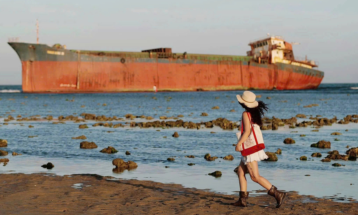 Hơn hai năm qua, vị trí tàu mắc cạn trở thành điểm check-in nổi tiếng ở Ninh Thuận. Gần đây tàu bị rạn nứt, không an toàn, chính quyền đặt bảng khuyến cáo du khách không đến gần.