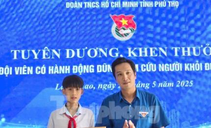 TPO - Ngày 28/5, Tỉnh Đoàn Phú Thọ đã trao bằng khen cho em Đặng Tuấn Hưng (đội viên lớp 8A3, Trường THCS Cao Xá, huy