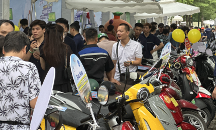 Người dân ở Hà Nội chen chân đi đổi xe máy xăng lấy xe máy điện