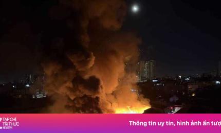 Đêm cháy kinh hoàng kho xưởng ở Trương Định: Lửa phừng phực, cột khói cao vút