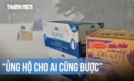 Xóm nhỏ bị cô lập, người dân dùng ghe tiếp tế lương thực sau bão Kalmaegi